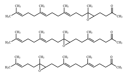 | 英文名称 | (5E,9E)-6,10-dimethyl-12-(3-methyl-3-(4-methylpent-3-en-1-yl)oxiran-2-yl)dodeca-5,9-dien-2-one--(E)-8-(3-((E)-4,8-dimethylnona-3,7-dien-1-yl)-3-methyloxiran-2-yl)-6-methyloct-5-en-2-one--4-(3-methyl-3-((3E,7E)-4,8,12-trimethyltrideca-3,7,11-trien-1-yl)oxiran-2-yl)butan-2-one (1/1/1) | 产品简称 | TPRTHYZZ(H123) |